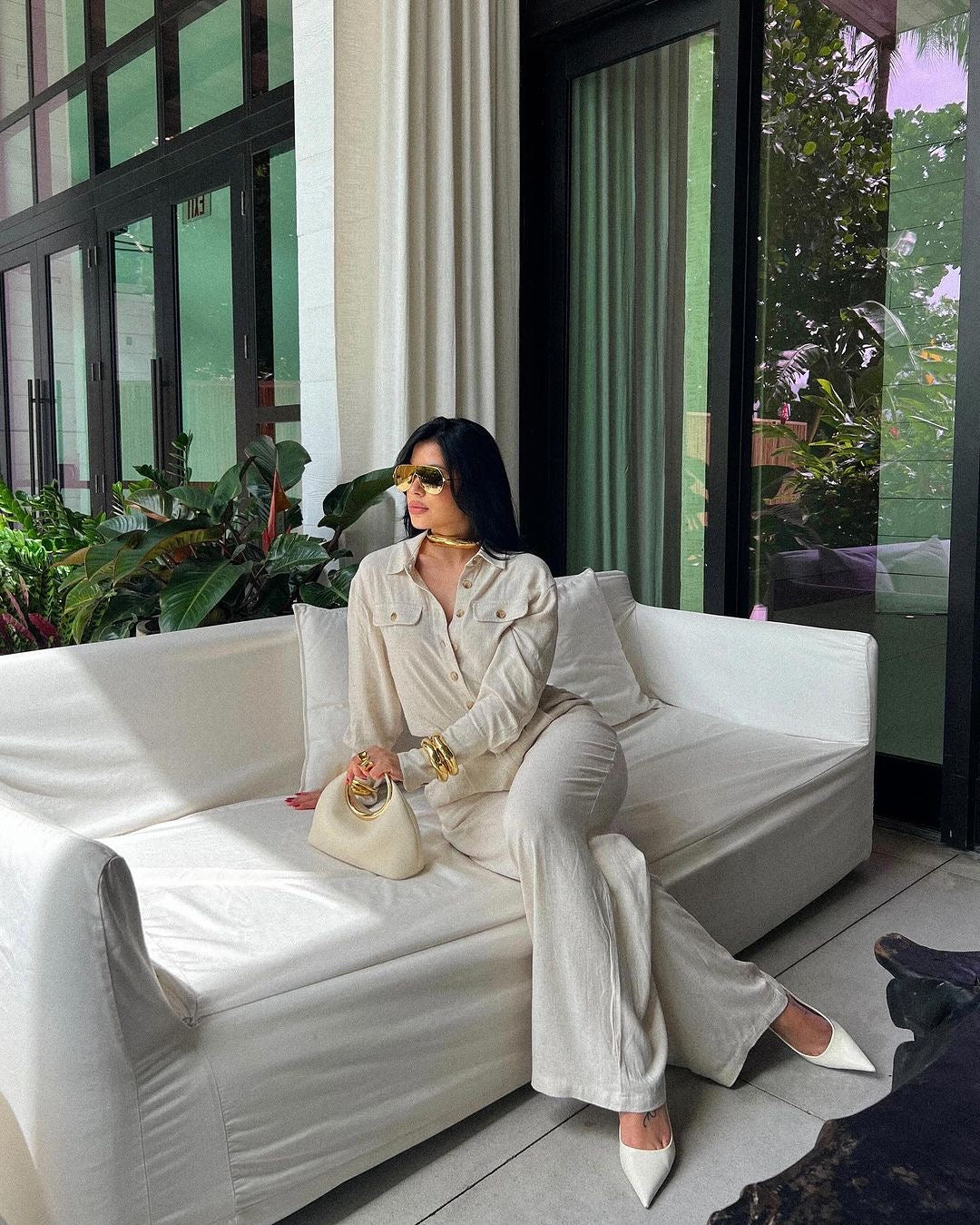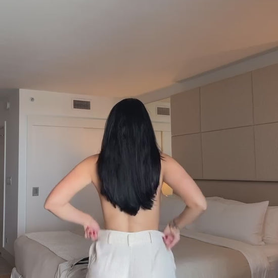 • Tela no stretch - Sin estiramiento • Conjunto de camisa y pantalón de lino • Color avena • Camisa de manga larga • Cierre de botones • Bolsillos de imitación en camisa • Pantalón de pierna ancha • Cierre de botón y cremallera • Lazos para el cinturón • Bolsillos en pantalón • Shell 85% Rayón 15% Lino